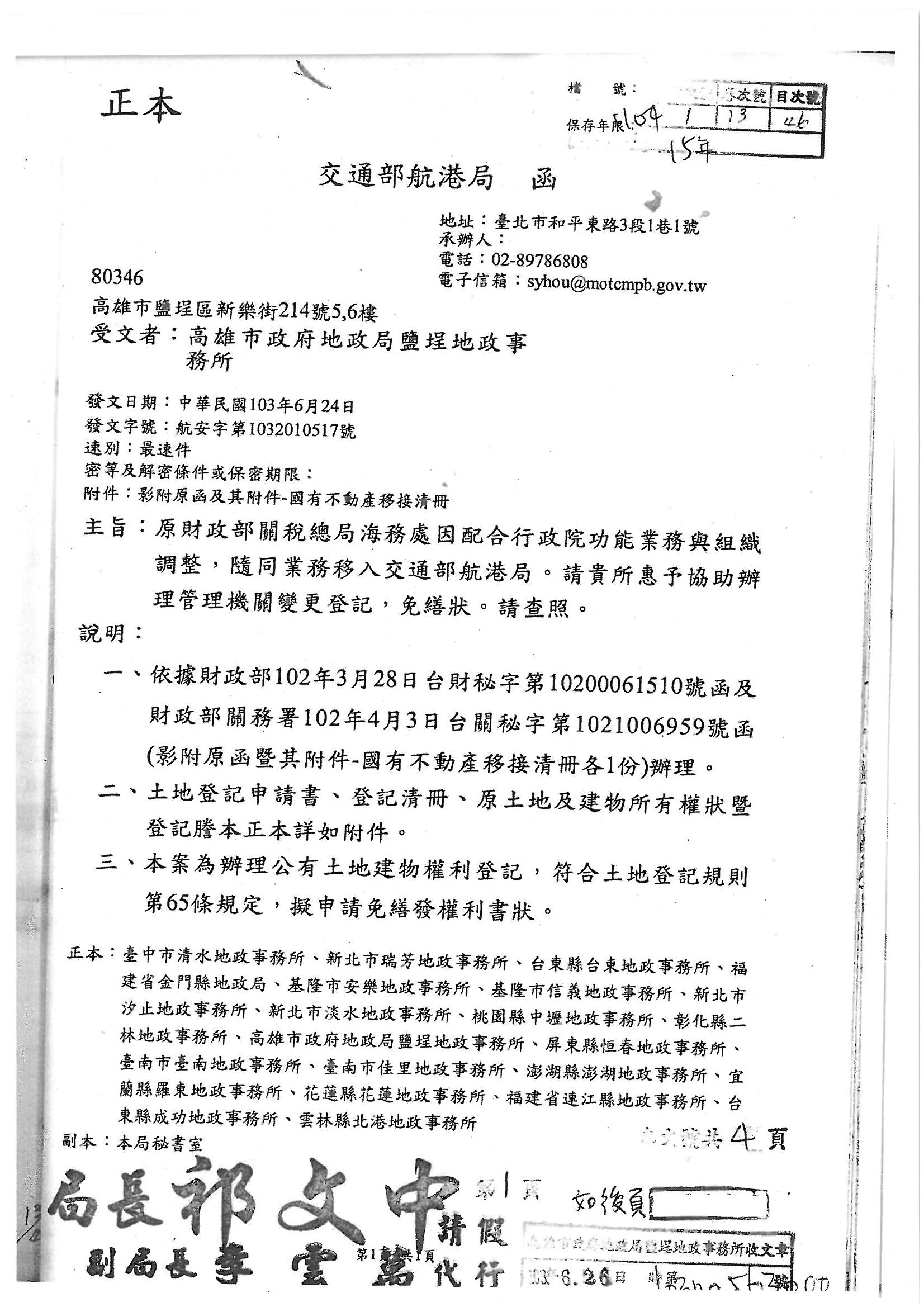 | 答 | 依土地法第四條規定:本法所稱公有土地,為國有土地、直轄市有土地、縣(市)有土地或鄉(鎮、市)有之土地。 依土地登記規則第六十五條第三款規定:公有土地土地登記完畢後,免繕發權利書狀。 | 務 所 |